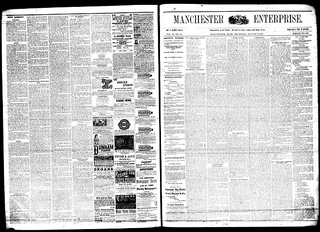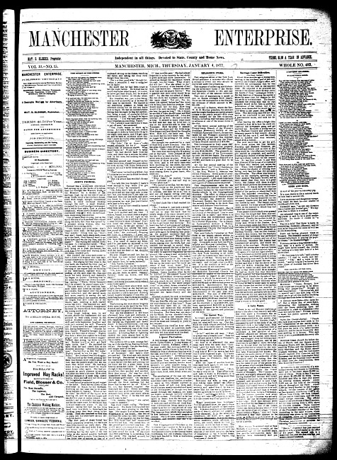 Text (1876)Part of Making of Modern MichiganManchester enterprise. Vol. 10 no. 15 (1877 January 4)