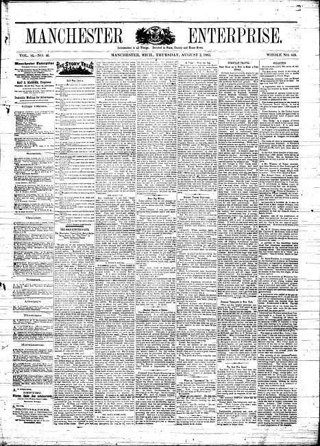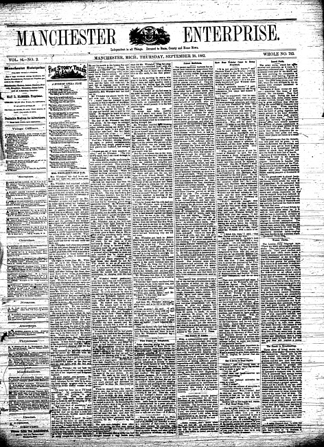 Text (1882)Part of Making of Modern MichiganManchester enterprise. Vol. 16 no. 2 (1882 September 28)