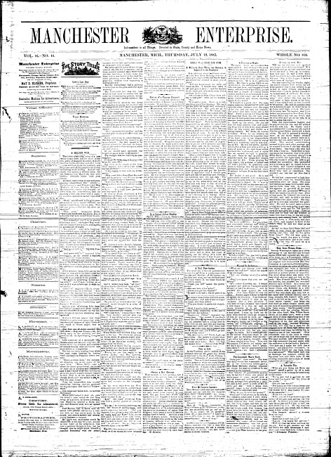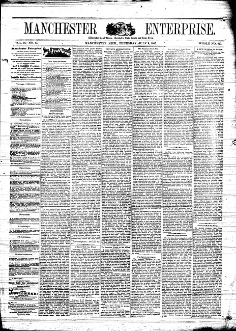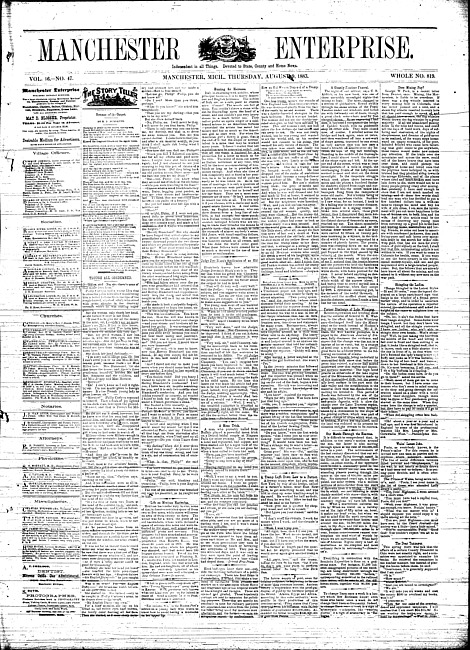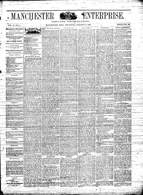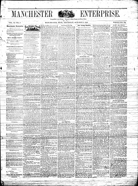 Text (1880)Part of Making of Modern MichiganManchester enterprise. Vol. 16 no. 4 (1882 October 12)