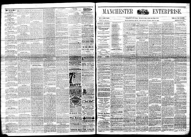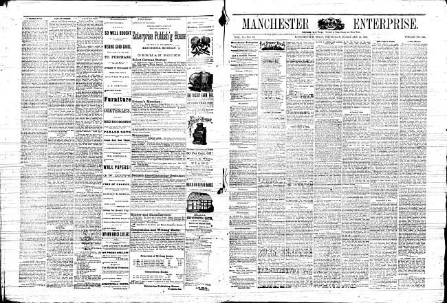 Text (1884)Part of Making of Modern MichiganManchester enterprise. Vol. 17 no. 21 (1884 February 7)