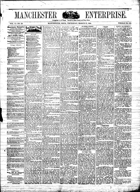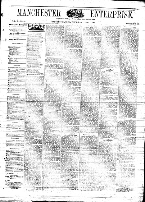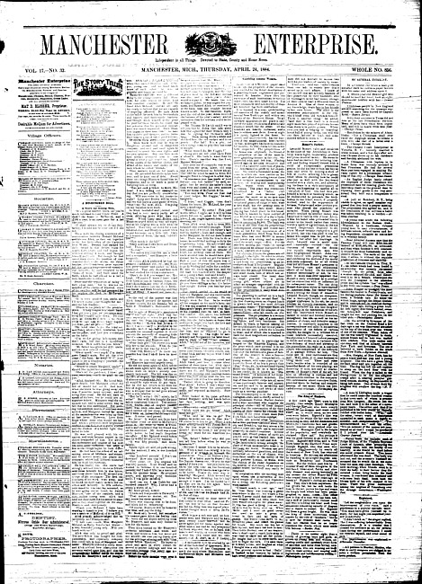 Text (1884)Part of Making of Modern MichiganManchester enterprise. Vol. 17 no. 23 (1884 February 21)