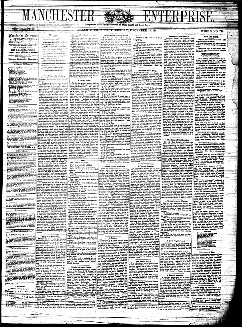 Text (1882)Part of Making of Modern MichiganManchester enterprise. Vol. 15 no. 14 (1881 December 22)