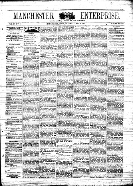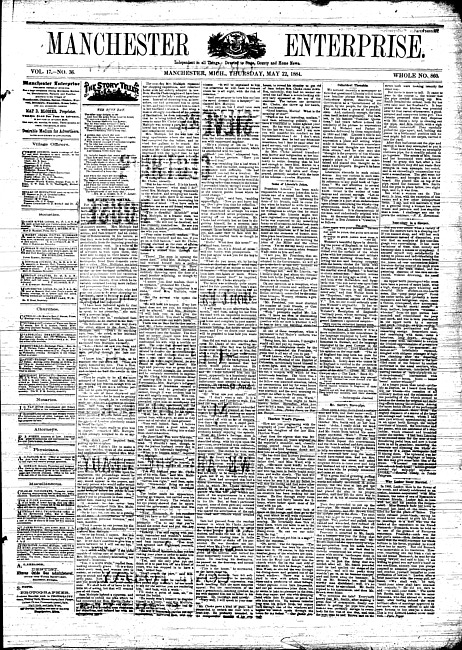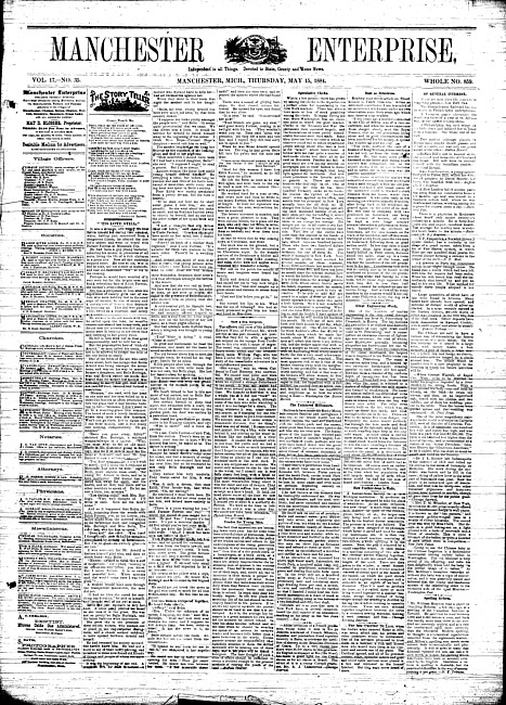 Text (1882)Part of Making of Modern MichiganManchester enterprise. Vol. 16 no. 18 (1883 January 18)