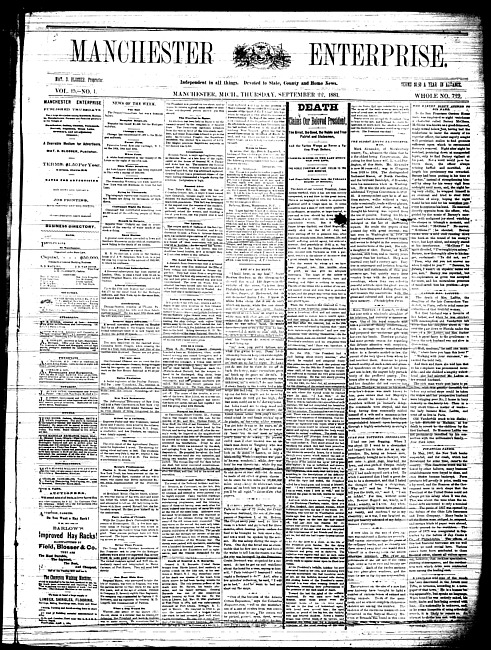 Text (1881)Part of Making of Modern MichiganManchester enterprise. Vol. 15 no. 52 (1882 September 14)