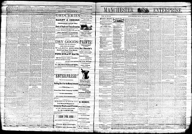 Text (1882)Part of Making of Modern MichiganManchester enterprise. Vol. 15 no. 50 (1882 August 31)