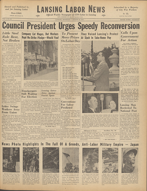 Lansing labor news. Vol. 1 no. 23 (1945 August 23)