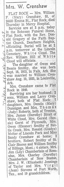 Surname index to newspaper clippings regarding the Milan MI area. Approx. dates 1964-1991, Page 008