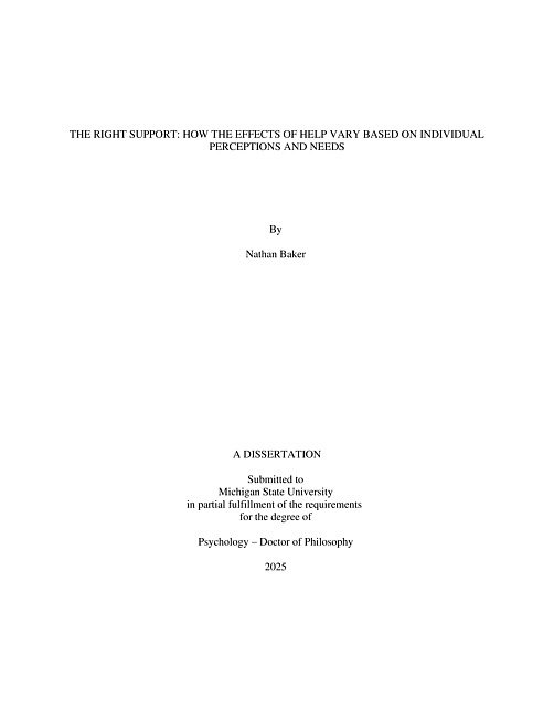 THE RIGHT SUPPORT : HOW THE EFFECTS OF HELP VARY BASED ON INDIVIDUAL PERCEPTIONS AND NEEDS