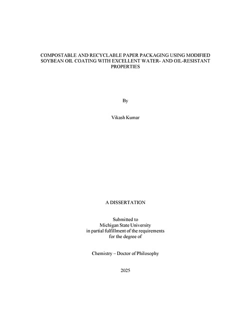 COMPOSTABLE AND RECYCLABLE PAPER PACKAGING USING MODIFIED SOYBEAN OIL COATING WITH EXCELLENT WATER- AND OIL-RESISTANT PROPERTIES