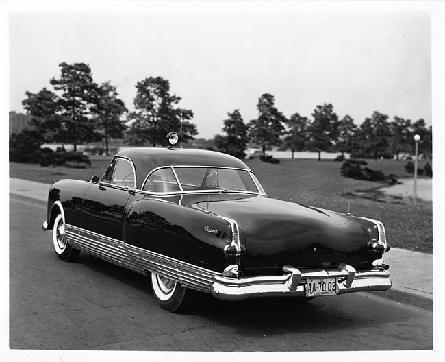 Still Image (1952)Part of Making of Modern Michigan1952 Packard special speedster, three-quarter rear view, parked on drive