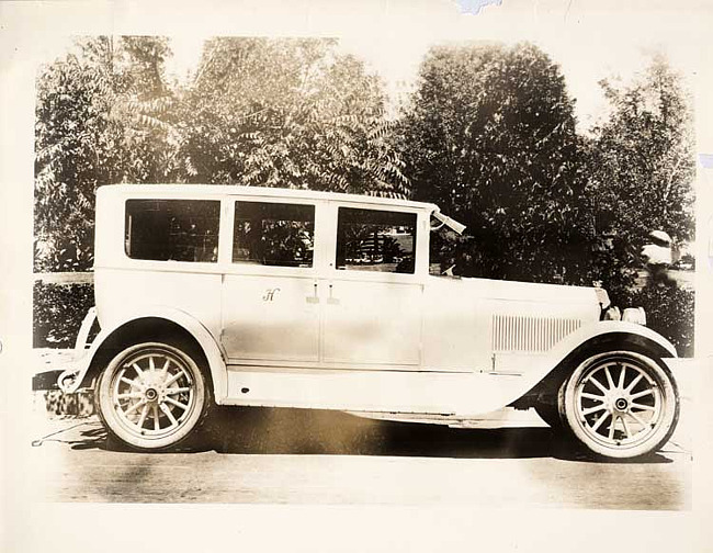 Still Image (1924)Part of Making of Modern Michigan1924 Packard sedan, right side view, parked on street, 'H' on monogram panel