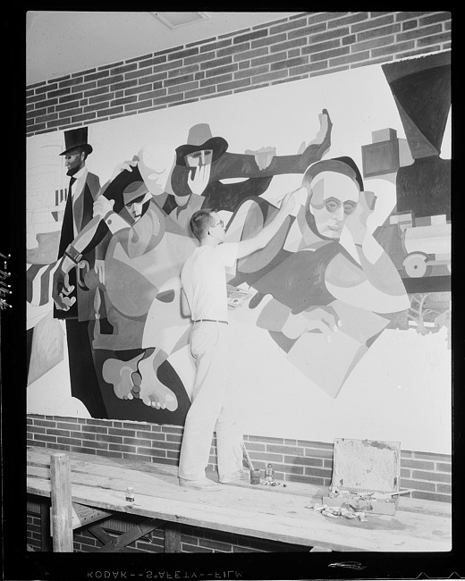 Man painting a mural