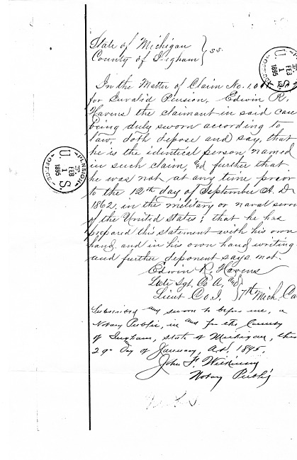 Albert Doxtader Pension Records : Declaration of Original Invalid Pension (August 16, 1879)