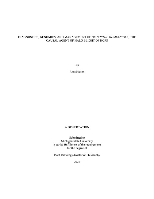 DIAGNOSTICS, GENOMICS, AND MANAGEMENT OF DIAPORTHE HUMULICOLA, THE CAUSAL AGENT OF HALO BLIGHT OF HOPS