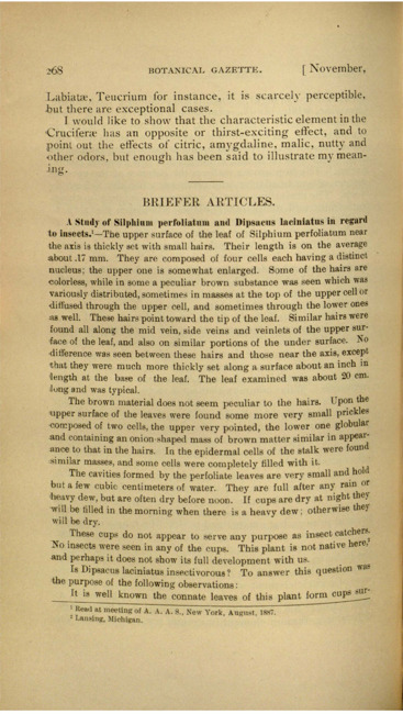 A study of Silphium perfoliatum and Dipsacus laciniatus in regard to insects