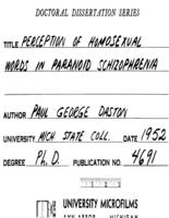 Some Rorschach correlates of change in clinical status : an investigation of ego regression in schizophrenia