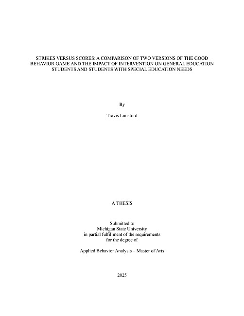 STRIKES VERSUS SCORES : A COMPARISON OF TWO VERSIONS OF THE GOOD BEHAVIOR GAME AND THE IMPACT OF INTERVENTION ON GENERAL EDUCATION STUDENTS AND STUDENTS WITH SPECIAL EDUCATION NEEDS