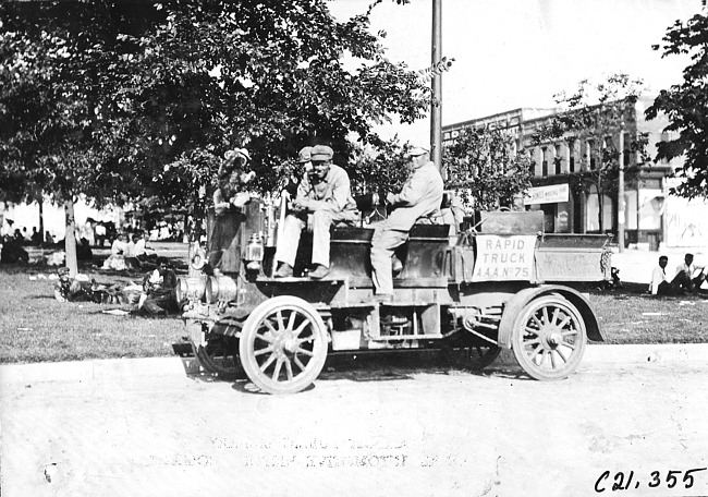 Rapid truck arriving at Ft. Dodge, Iowa at the 1909 Glidden Tour