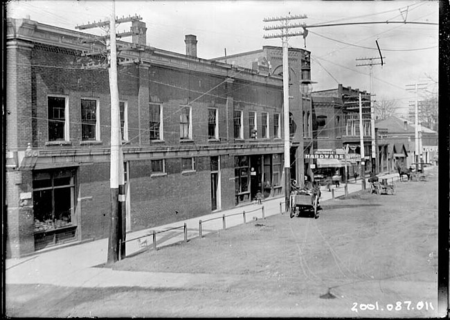 Still Image (19xx)Part of Making of Modern MichiganGeo. Huston's, Taylor Bakery and Schrader Building on Penniman Avenue