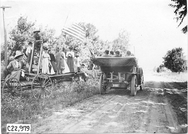 Still Image (1909)Part of Making of Modern MichiganStudebaker car on rural road passing onlookers, at 1909 Glidden Tour
