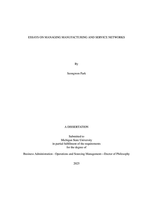ESSAYS ON MANAGING MANUFACTURING AND SERVICE NETWORKS