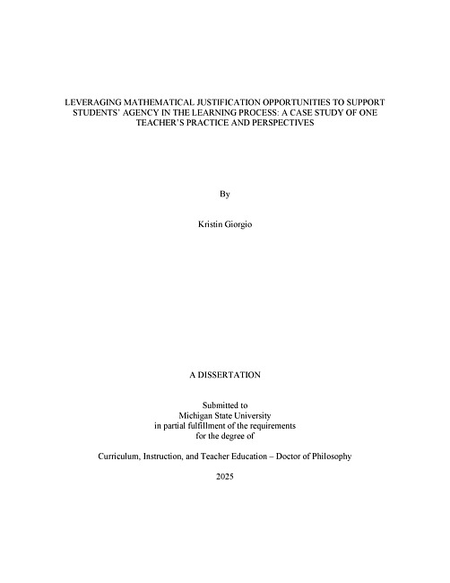 Leveraging Mathematical Justification Opportunities to Support Students' Agency in the Learning Process : A Case Study of One Teacher's Practice and Perspectives