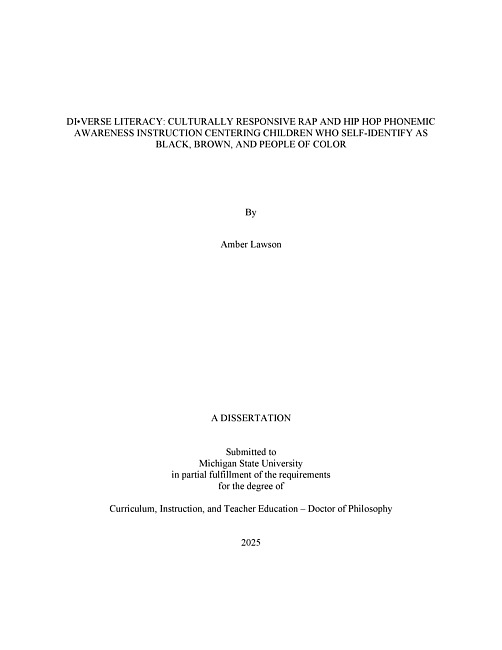 DI•VERSE LITERACY : CULTURALLY RESPONSIVE RAP AND HIP HOP PHONEMIC AWARENESS INSTRUCTION CENTERING CHILDREN WHO SELF-IDENTIFY AS BLACK, BROWN, AND PEOPLE OF COLOR
