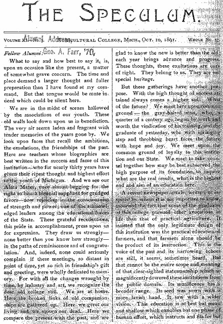 The college speculum. Vol. 7 no. 2 (1887 October 1)