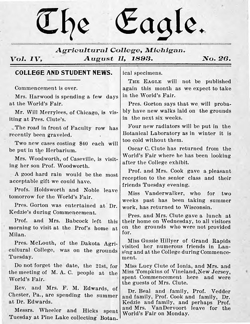 The Eagle. Vol. 4 no. 26 (1893 August 11)