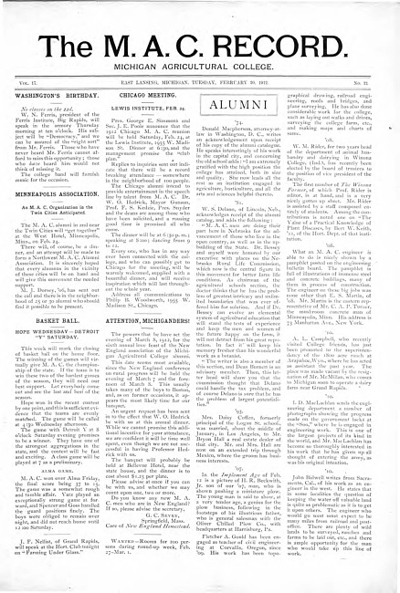 The M.A.C. record. Vol. 17 no. 21 (1912 February 20)