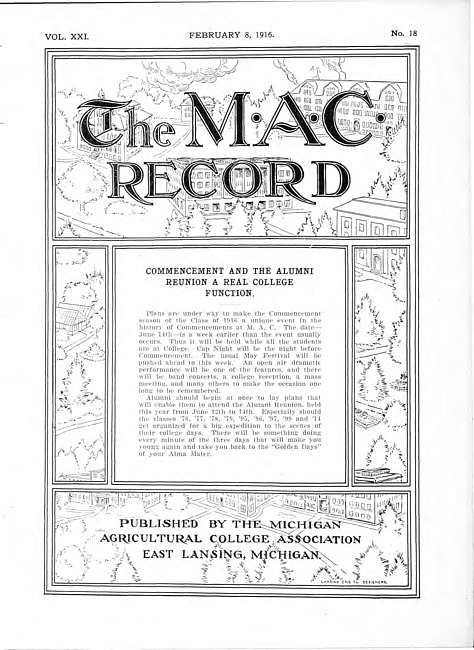 The M.A.C. record. Vol. 21 no. 18 (1916 February 8)