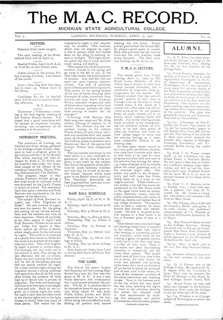 The M.A.C. record. Vol. 7 no. 29 (1902 April 15)