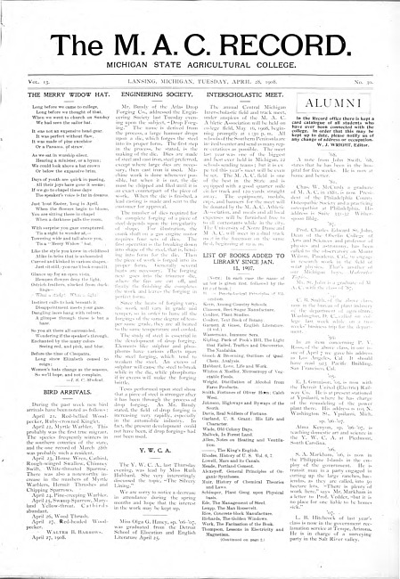 The M.A.C. record. Vol. 13 no. 30 (1908 April 28)