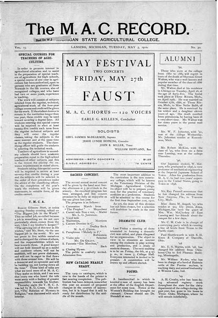 The M.A.C. record. Vol. 15 no. 30 (1910 May 3)
