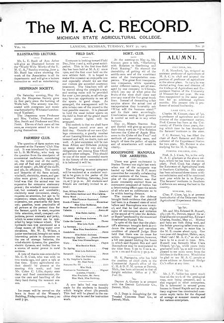 Text (1935)Part of M.A.C. Record (Serial 48)Michigan State College record. Vol. 35 no. 9 (1930 May)