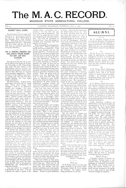 The M.A.C. record. Vol. 9 no. 15 (1904 January 5)
