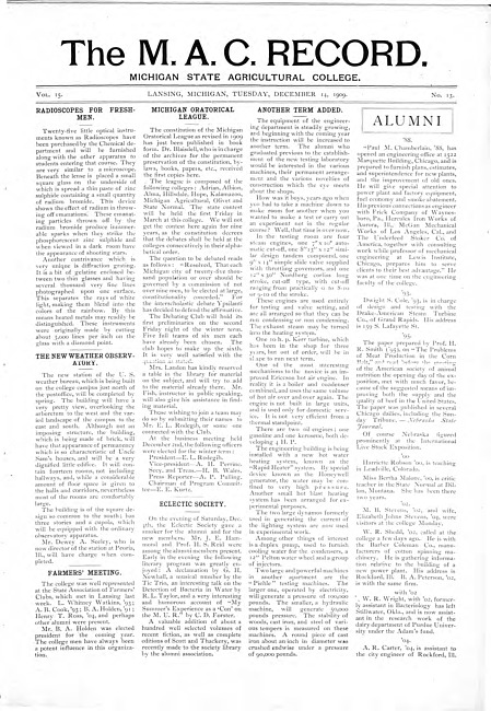 The M.A.C. record. Vol. 15 no. 13 (1909 December 14)