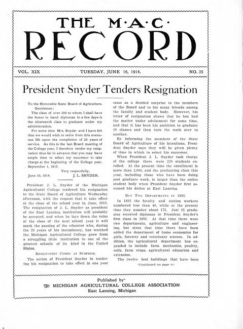 The M.A.C. record. Vol. 19 no. 35 (1914 June 16)