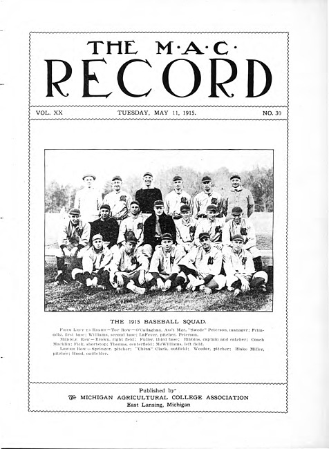 The M.A.C. record. Vol. 20 no. 30 (1915 May 11)