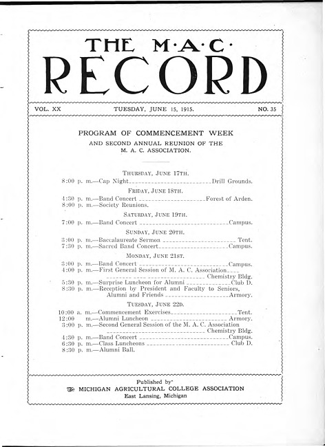 The M.A.C. record. Vol. 20 no. 35 (1915 June 15)