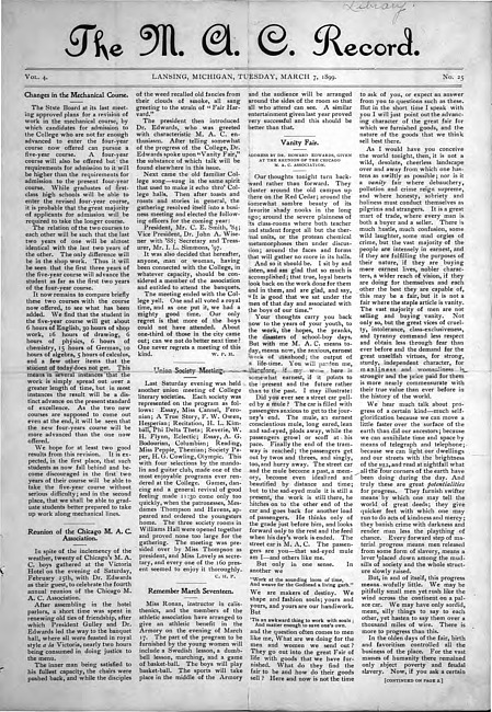 The M.A.C. record. Vol. 4 no. 25 (1899 March 7)