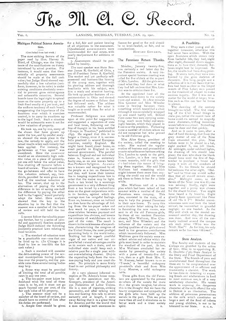 The M.A.C. record. Vol. 6 no. 19 (1901 January 29)