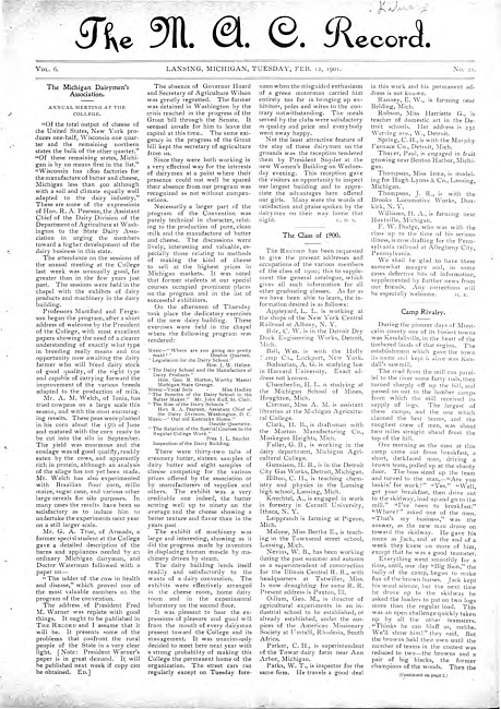 The M.A.C. record. Vol. 6 no. 21 (1901 February 12)
