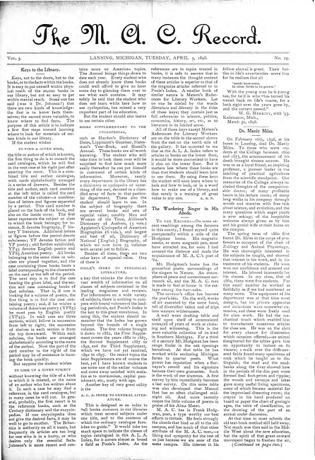 The M.A.C. record. Vol. 3 no. 29 (1898 April 5)