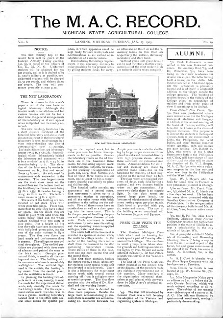 Michigan State College record. Vol. 36 no. 5 (1931 January)