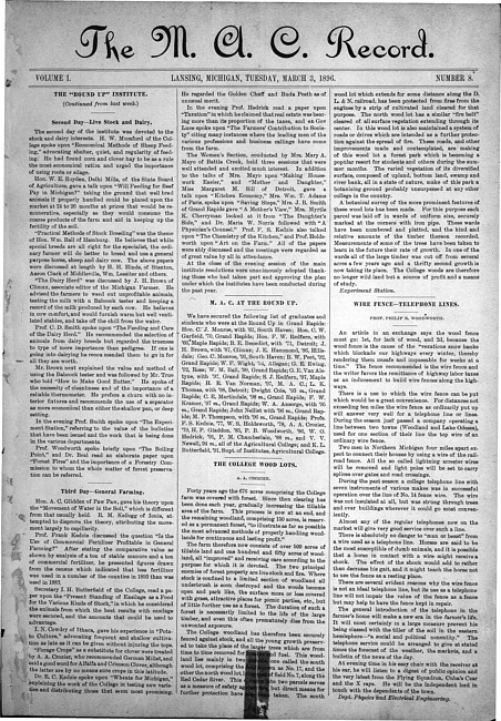 The M.A.C. record. Vol. 1 no. 8 (1896 March 3)