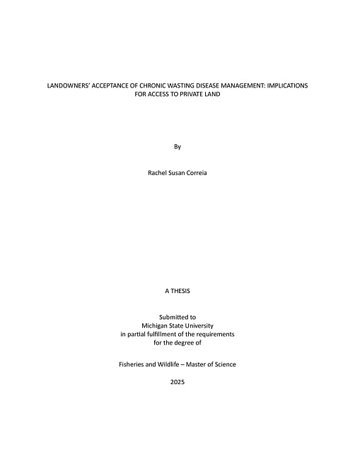 LANDOWNERS’ ACCEPTANCE OF CHRONIC WASTING DISEASE MANAGEMENT : IMPLICATIONS FOR ACCESS TO PRIVATE LAND