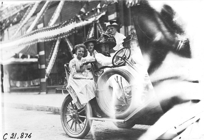 - Five women pose in Oldsmobile car at Council Bluffs, Iowa at 1909 Glidden TourStill Image (1909)Part of Making of Modern Michigan