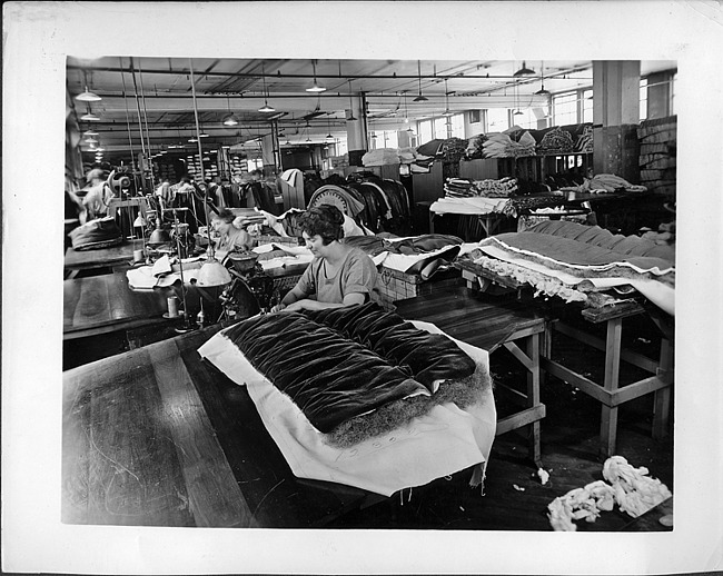 Still Image (1936)Part of Making of Modern MichiganWomen sewing car seats in Packard upholstery department, 1925