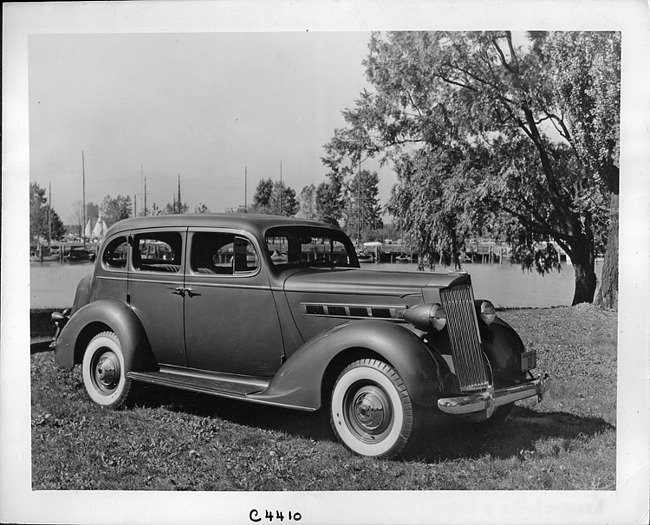 Still Image (1935)Part of Making of Modern Michigan1937 Packard touring sedan, three-quarter right side view, parked on grass